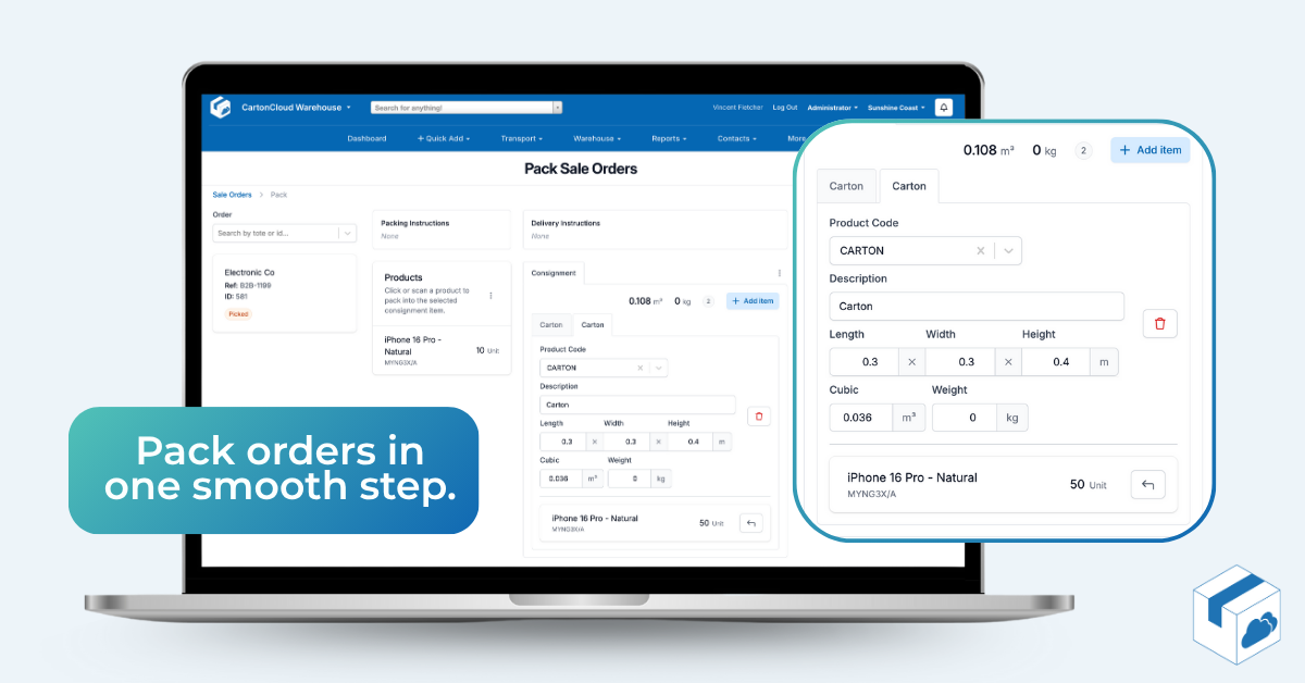What’s new this month? CartonCloud’s dedicated Pack Screen, along with a new Picked status and the concept of Warehouse Fulfilments. Together, these provide a more defined and flexible order lifecycle, allowing teams to separate picking and packing into specialist workflows — perfect for businesses managing high volumes of complex products or diverse teams.