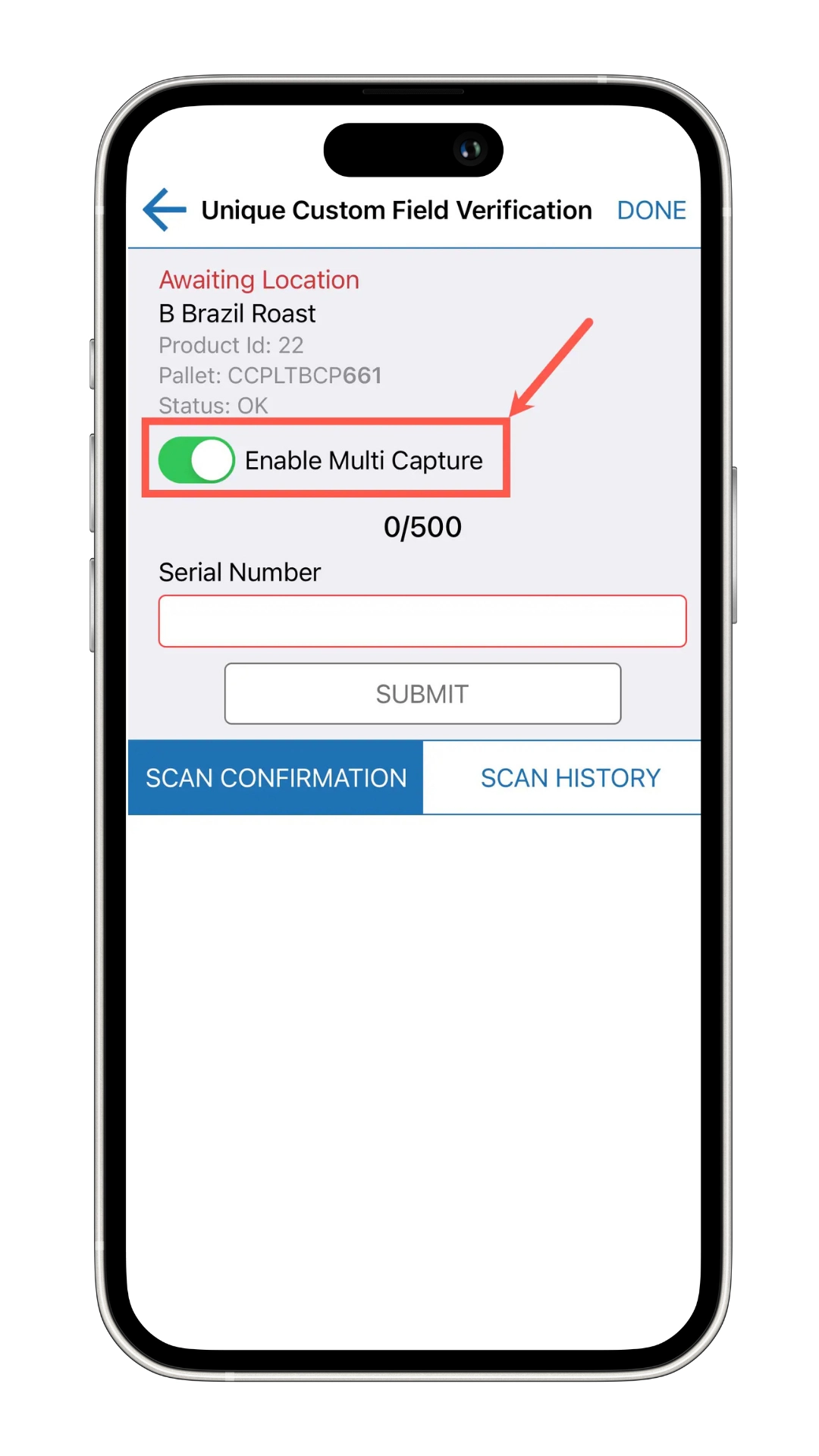In CartonCloud’s 3PL E-Commerce system, you can also do bulk scans with QR codes (Multi Capture), instead of having to individually scan for multiple barcodes. This ensures you capture each individual serial barcode, ensuring nothing gets missed.